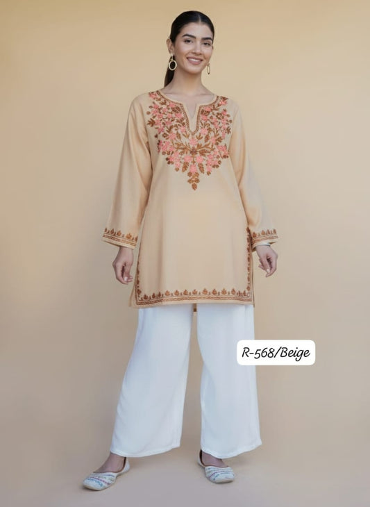Authentic Kashmiri Handwork Aari Embroidery Short Kurti