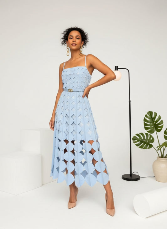 Elegant Circle Cut-Work Strap Dress | Geometric Laser Cut Midi